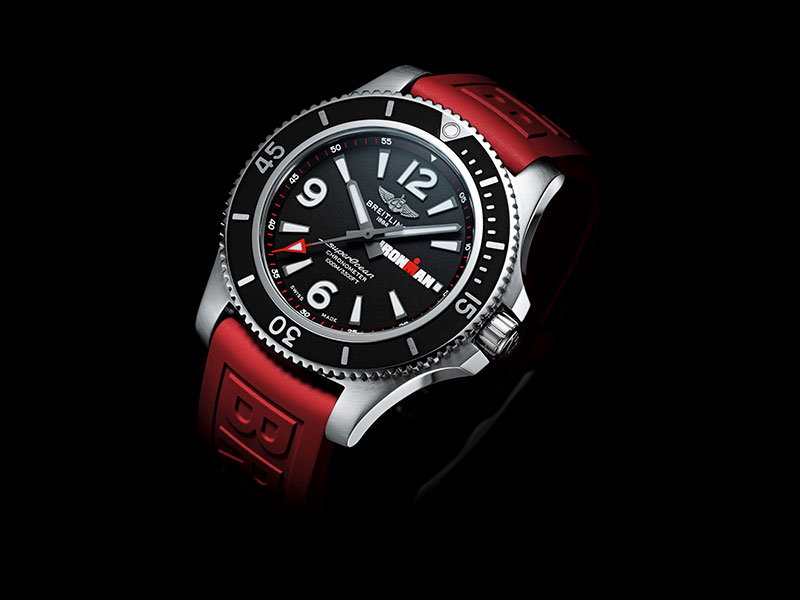 Лимитированная серия часов Breitling Superocean Automatic 44 Ironman Limited Edition, выпущенная в честь сотрудничества часовой мануфактуры с IRONMAN, входит в коллекцию популярных часов для дайвинга Breitling Superocean. Диаметр корпуса, выполненного из нержавеющей стали, составляет 44 мм. Черный циферблат украшен фирменным логотипом IRONMAN®. Модель дополняет красный каучуковый ремешок Diver Pro III с классической застежкой. Вращающийся в одном направлении безель с храповым механизмом станет незаменимым инструментом для дайверов, измеряющих время нахождения под водой.