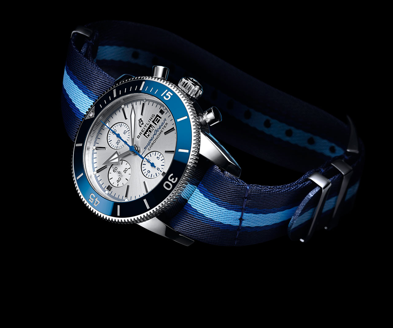 Хронометр в 44-миллиметровом корпусе из нержавеющей стали дополнен ремешками NATO из инновационного материала ECONYL®, который производят из нейлоновых отходов (к примеру, из использованных рыболовных сетей). Эти ремешки отличаются высокой прочностью, а характеристики ECONYL® позволяют перерабатывать его неограниченное количество раз. Часы имеют сатиновый ремешок NATO с синими полосками. Дополнительно в комплект входит синий сатиновый ремешок NATO. Коробка часов также изготовлена из экологичного материала, который может быть на 100% утилизирован.