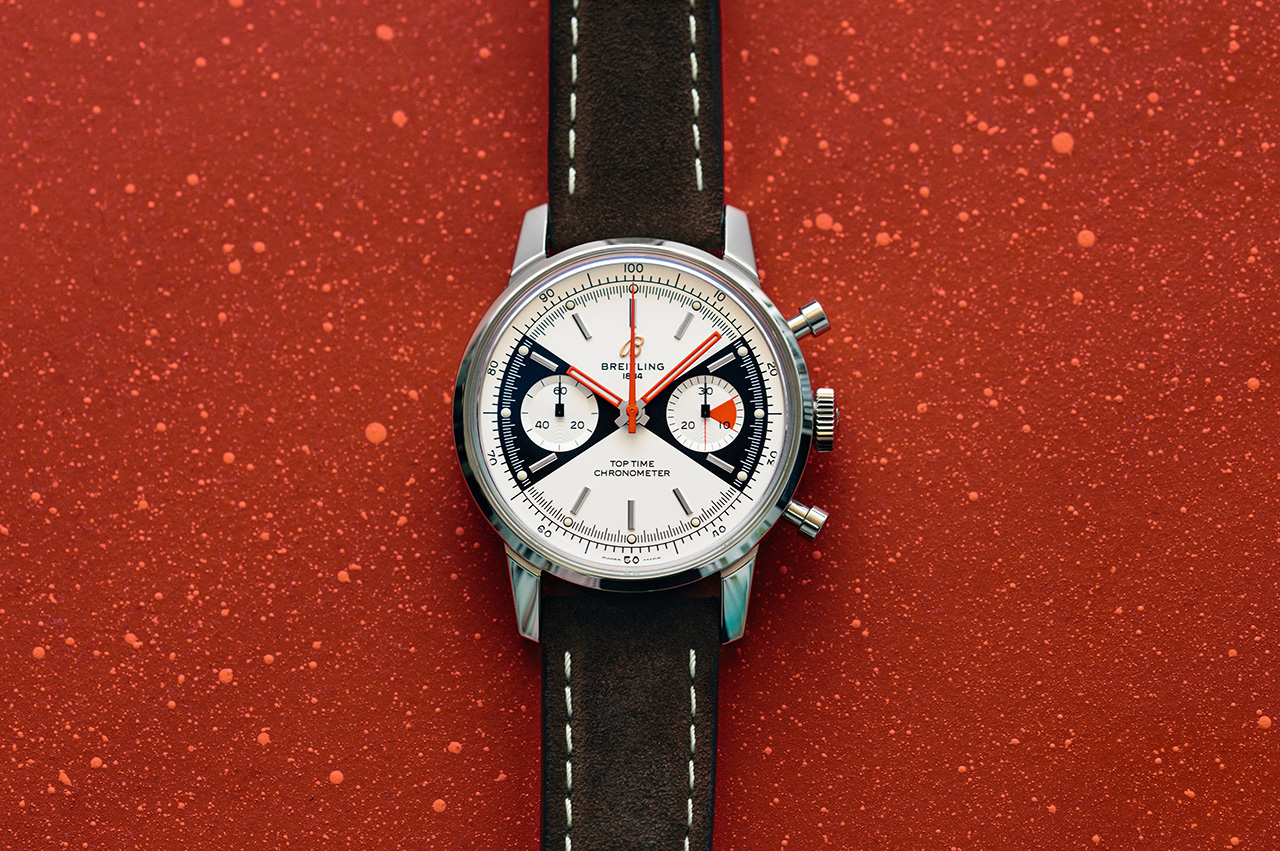 «Мы разрабатываем превосходные ультрасовременные хронографы. Главные часы этой линейки – абсолютно новая модель Top Time», – говорил Брайтлинг о новинке бренда того времени. Благодаря спортивному характеру эти часы привлекли внимание не только молодых мужчин, но и женщин, оценивших смелый дизайн и элегантность модели. Сегодня компания Breitling дарит поклонникам бренда обновленный хронограф Top Time. Его предшественник обладал одним из самых оригинальных циферблатов за всю историю часового дела и тем самым завоевал признание многих коллекционеров.