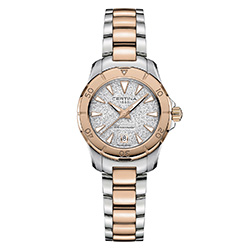 Две двухцветные версии создают идеальное обрамление для слегка переливающихся циферблатов, безель которых имеет PVD-покрытие цвета розового золота: один циферблат выполнен в антрацитовых тонах, другой имеет инкрустацию сияющими серебристыми стразами. Обе модели оснащены стрелками цвета розового золота и металлическими браслетами с PVD-покрытием цвета розового золота. Простая элегантная модель из нержавеющей стали имеет эффектный темно-синий циферблат. Щедрый слой покрытия Super-LumiNova® на стрелках, цифрах и часовых отметках всех моделей обеспечивает оптимальную считываемость показаний даже в темноте.
