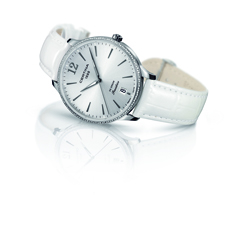 - белый ремешок имеет версия с серебристым циферблатом, метками и стрелками с PVD-покрытием розовым золотом и версия с серебристым циферблатом, чёрными никелированными стрелками и метками, 120 бриллиантами «Top Wesselton» по безелю;