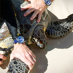 Выпуском новой специальной модели марка Certina вновь обращается к морю и его обитателям. С первого взгляда на DS Super PH500M Sea Turtle Conservancy становится ясно: эти часы – особенные. В этом исполнении STC впервые выполнены в винтажном стиле с люминесцентным материалом. При этом характер модели остался неизменным. Часть дохода от продаж новой модели направлена одноименной организации в поддержку ее важной работы. И не только ремешок, но и упаковка этих часов изготовлена из экологичного материала. Каким же будет экологичный цвет? В этом году Certina выбирает королевский синий.