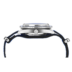 Синий текстильный ремешок выполнен из материала #tide ocean material®, изготовленного на основе океанического пластика. Футляры для часов произведены из полностью перерабатываемых материалов, таких как органический хлопок, а для подушечек используется переработанный полиэстер.