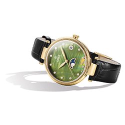 Минеральное стекло циферблата защищает часы от ударов и повреждений и долго сохраняет первоначальный внешний вид. Но изюминкой модели является частичка звездного лунного неба на циферблате, как легкий намек на загадочность и непредсказуемость ее владелицы.