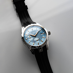 Модель оснащена индикатором запаса хода на 6 часах и малой секундной стрелкой на 9 часах - идеальный баланс между эстетикой и функциональностью. Завинчивающаяся коронка и высокая водонепроницаемость делают модель достойным компаньоном не только на суше, но и на глубине.