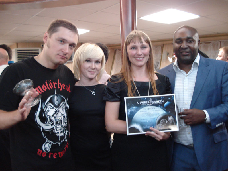 После трёх дней обучения состоялось дополнительное тестирование, победители которого были награждены поездкой в Швейцарию. Они побывают на мануфактуре ULYSSE NARDIN и пообщаются с легендарным Людвигом Охслином. Все участники семинара получили именные сертификаты и, главное, колоссальный заряд положительной энергии. Теперь я точно знаю, что если очень захотеть, можно к звёздам полететь. Даже на теплоходе! Если всё это происходит с компанией ULYSSE NARDIN.