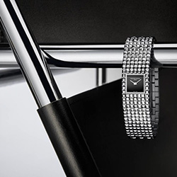 Cl Classics Manchette — это решительный аксессуар: при взгляде первым бросается скульптурный браслет с орнаментом Clou de Paris, который играет бликами и превращает часы в украшение. Мини-циферблат выдержан в строгой минималистичной манере — только часы и минуты — чтобы ничто не отвлекало от фактуры и формы браслета.