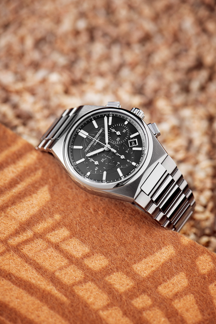 Появление в этой легендарной коллекции хронографа было событием, которого ее верные поклонники давно ждали. Это самое важное усложнение в часовом деле и вопреки распространенному мнению одно из самых технически сложных, а также, вероятно, самое используемое. Frederique Constant выбрал версию с автоматическим механизмом в соответствии с позиционированием Highlife как современной, динамичной и городской коллекции.