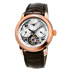 Часовое усложнение категории Grande Complication объединило в себе кремниевое анкерное колесо и кремниевую анкерную вилку, балансовое колесо со специальными регулировочными винтами и каретку турбийона. Это поразительное достижение в часовом производстве: весь турбийон до последней детали разработан с использованием автоматизированных систем. Накопленные за много лет опыт и знания часовых мастеров легли в основу создания этих удивительных часов. Модель Perpetual Calendar Manufacture Tourbillon наделена выдающимися рабочими характеристиками, она соответствует самым высоким стандартам, отличается мастерским исполнением и наличием уникальных функций.