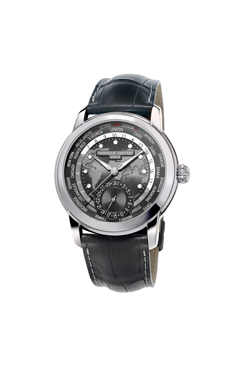 На часах выделяются два отдельных диска: первый – с 24-часовым индикатором день-ночь, второй – с названиями 24 городов. Поскольку калибр FC-718 является механизмом собственной разработки бренда, он украшен отделкой перлаж (зернение) и круговым узором Côtes de Genève. Имеет запас хода 42 часа. Темно-серый хронометр комплектуется темно-серым ремешком из крокодиловой кожи с белыми стежками.