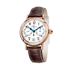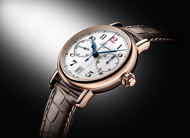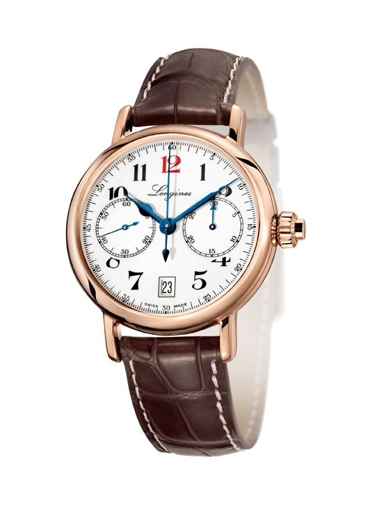 Модель однокнопочного хронографа «The Longines Column-Wheel Single Push-Piece Chronograph», изготовленного по образцу 1913 года, в корпусе из розового золота диаметром 40 мм с автоматическим механизмом калибра «L788» производства компании «ETA». Белый циферблат, чёрные арабские цифры, красная цифра «12», воронёные фигурные стрелки, 30-минутный и 60-секундный счётчики хронографа, окошечко даты. Коричневый кожаный ремешок.