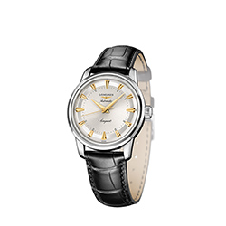 3. Longines Conquest Heritage 1954-2014 – L1.611.6.70.4 – в корпусе из жёлтого золота с серебристым циферблатом, стрелками и индексами цвета жёлтого золота, лимитированная серия – 60 экземпляров.