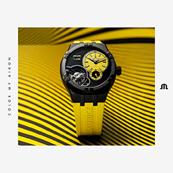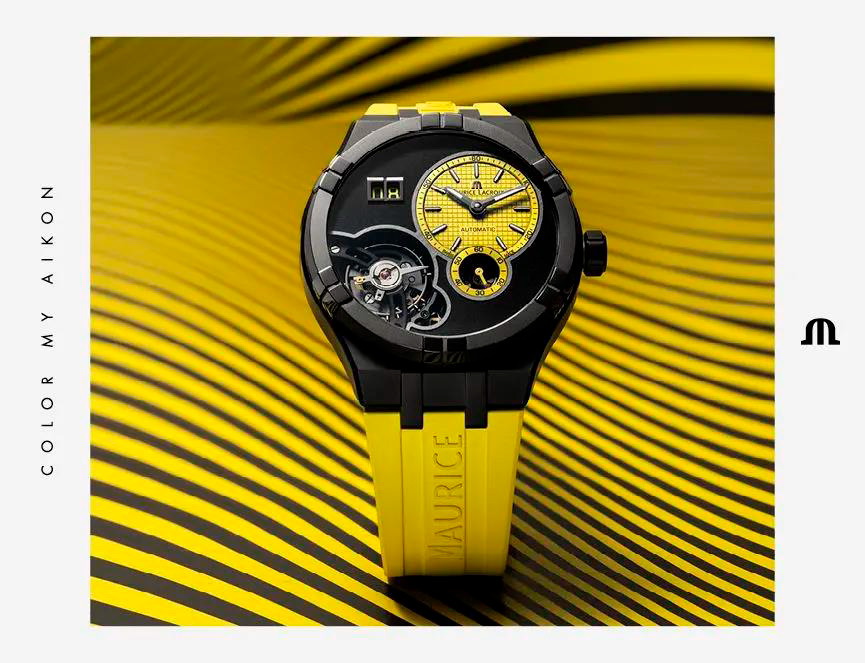 Maurice Lacroix по-новому интерпретирует внешний вид своего AIKON Master Grand Date Black, используя яркие солнечные оттенки. В результате получились часы AIKON Master Grand Date Technicolour, сочетающие серьезное часовое искусство с игривым использованием цвета.