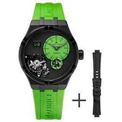 Как и в случае с другими элементами коллекции AIKON, в чехле отсутствуют обычные выступы и ремешок встроен в корпус, что повышает комфорт пользователя. Часы поставляются с двумя резиновыми ремешками: один подходит к циферблату, а другой представлен в черном цвете в дополнение к корпусу. На обоих ремешках рельефно выгравировано Maurice Lacroix, что придает модели современный вид.