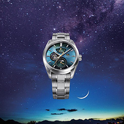 Циферблат новинок отличается изысканным сочетанием цветовых градаций от темно-синего до зеленого и сверкающих акцентов, вызывающих образ открытого космоса и далеких туманностей.