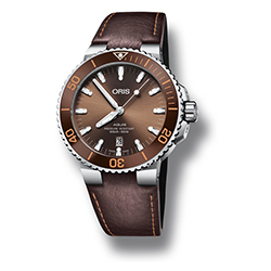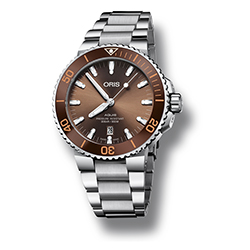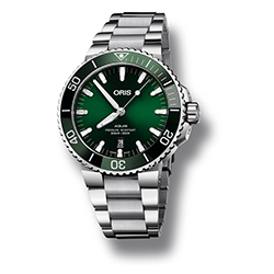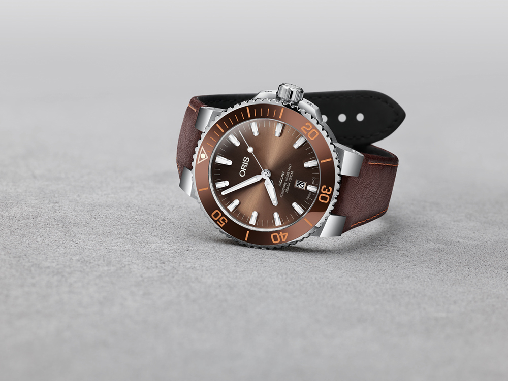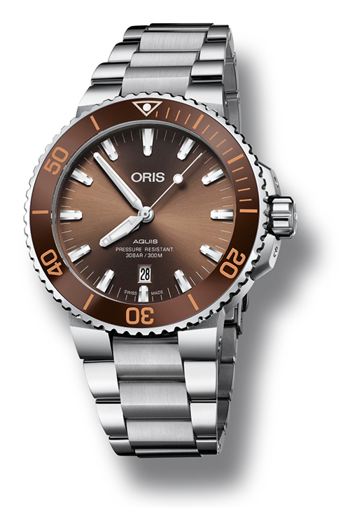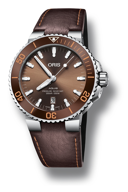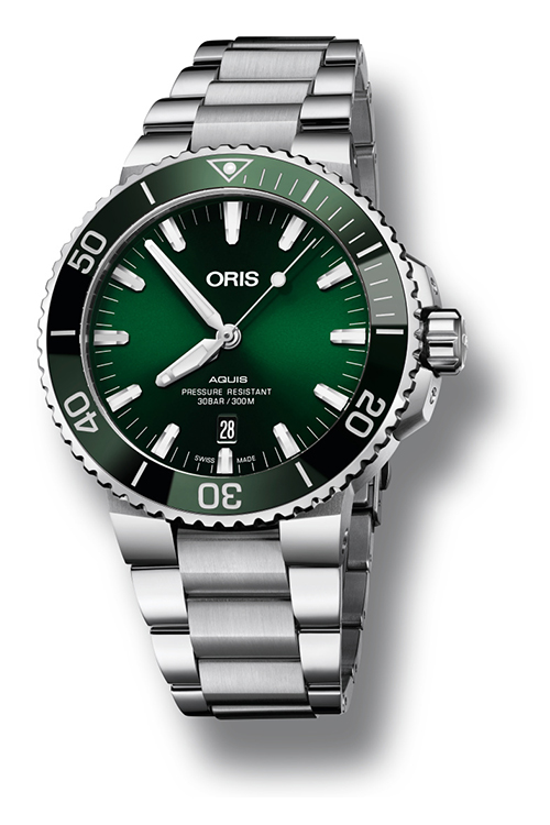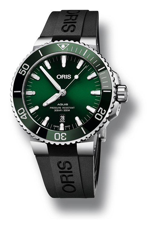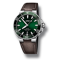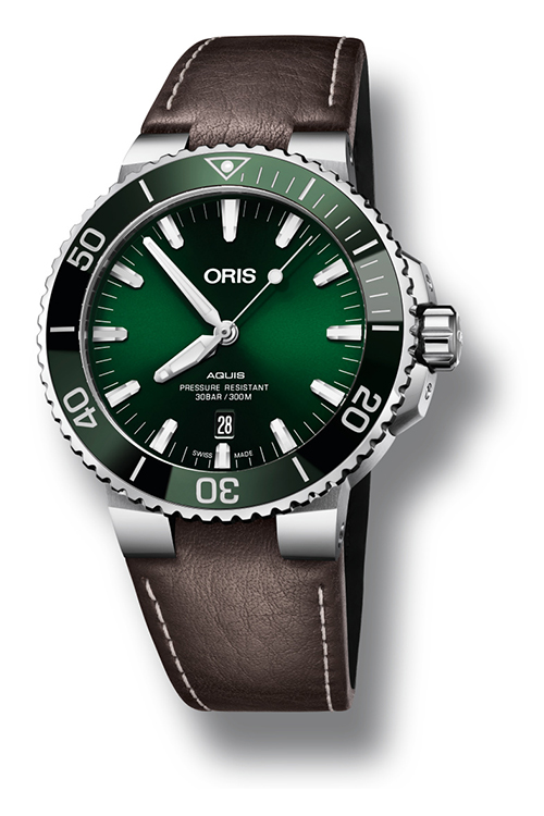Теперь как никогда раньше легко найти часы Aquis Date, отвечающие индивидуальным вкусам. Дизайнеры Oris уделили особое внимание работе с цветовой палитрой. Часы будут выпущены в нескольких вариантах оттенков, что дает искушенных ценителям часового дела больше возможностей для выбора. Циферблат, ободок и ремешок новых моделей выполнены в единой цветовой гамме: зеленой, коричневой или черной. Часы можно выбрать на ремешке или браслете.