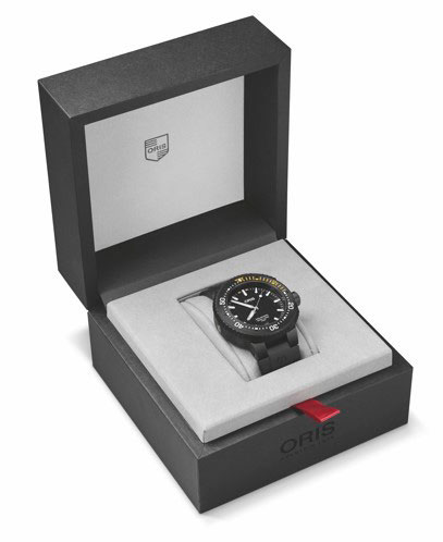 Среди специальных технических характеристик этой модели – запатентованная Oris система фиксации ободка Rotation Safety System, известная как RSS. Это эксклюзивно используемое Oris устройство, разработанное по заказу сообщества профессиональных подводников, позволяет владельцу часов настраивать положение дайверского ободка одностороннего вращения и фиксировать его положение. Это означает, что во время погружения подводник сможет с абсолютной уверенностью определять оставшееся время погружения. Рельефная каучуковая накладка упрощает работу даже в перчатках, а жёлто-белая минутная шкала, выгравированная на устойчивой к появлению царапин керамической вставке ободка, обеспечивает высокую чёткость индикации даже при слабом освещении.