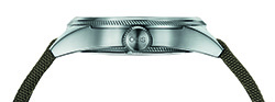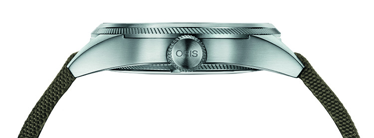 Новинка марки «Oris» комплектуются текстильным ремешком цвета хаки, снабжённым раскладывающейся застёжкой-бабочкой, изготовленной из нержавеющей стали.