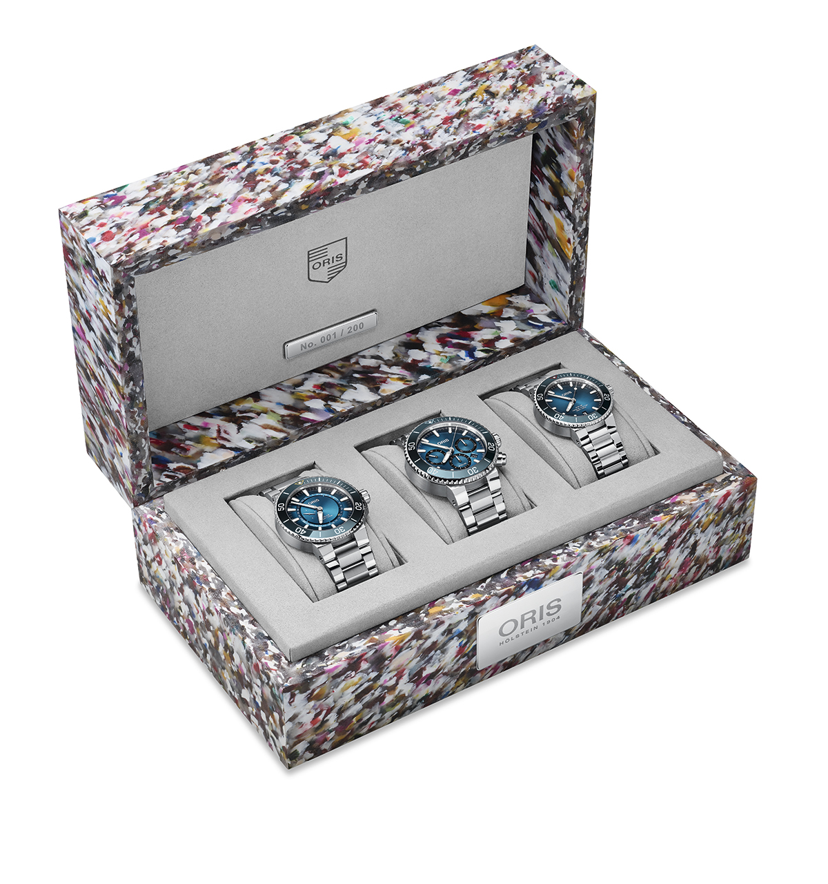 Комплект Oris Ocean Trilogy состоит из трех часов ограниченной серии, каждая из которых связана с определенной организацией и ее важной работой по очистке, защите или восстановлению мирового океана и источника всей жизни – воды.
