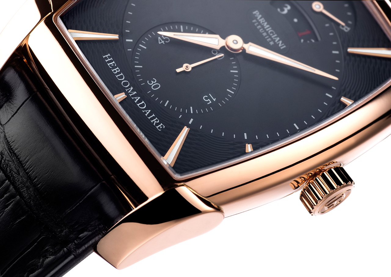 Для лучшей читаемости счетчики увеличены и размещены чуть выше центральной оси, а в изогнутой апертуре с золотой окантовкой на отметке «12 часов» вращается диск указателя даты с белыми арабскими цифрами и золоченой цифрой «1». Покрытые люминофором стрелки формы Delta отсчитывают время по накладным (вручную) фацетированным меткам из розового золота, которые также покрыты люминесцентным составом и идеально совпадают по стилю с раскладывающейся застежкой на ремне Hermes из черной кожи аллигатора. Эти исключительные часы выпущены серией из 50 пронумерованных экземпляров.