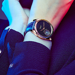 Модель Tonda 1950 Moonbow комплектуется на выбор красным или синим ремнем Hermès, а также золотым браслетом.