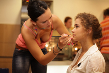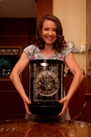 "Ей не нужно делать ничего, просто улыбаться", - звучат распоряжения на съемочной площадке проекта. А Наталья и улыбается, улыбается от души. Девушка она хрупкая, а когда ей предложили взять в руки довольно массивные Kieninger, у нее и вопроса не возникло: "А зачем? А как? Вдруг они тяжелые"... Подняла легко, по-прежнему ослепительно улыбаясь... В перерывах, когда фотограф настраивал свет, Наталия с любопытством изучала пружинки, колеса и механизмы - еще бы! Наверное, нет ничего более завораживающего, чем следить за бегом времени. И данная модель позволяет это сделать - механизм совершенно не скрыт, он за стеклом.