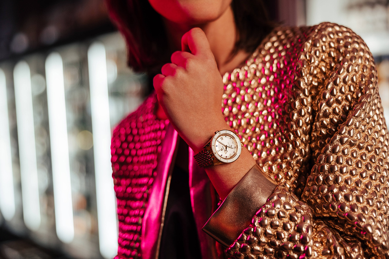 Дизайнер Марина Хоерманседер называет это домом и вновь возвращается к сотрудничеству со швейцарской часовой компанией Rado, моделью с 80-часовым запасом хода, которая отмечает творческий импульс, разделяющий с этим городом, историческим центром разнообразия и энергии. Этот уникальный новый вариант часов Captain Cook привносит в линейку продуктов танцевальный шаг Марины с радугой драгоценных камней, контрастными вставками PVD, знаменитым сапфировым стеклом в форме коробки и, конечно же, безошибочно узнаваемыми ремешками Marina Hoermanseder. В центре новых часов расположена оригинальная секундная стрелка, которая стильно и игриво отсчитывает время, являясь одновременно изображением сердцебиения и фирменным знаком Марины. Восхитительно.