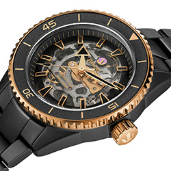 - сталь с покрытием Rose Gold/ полированная черная керамика, вращающийся (Captain Cook Skeleton)
