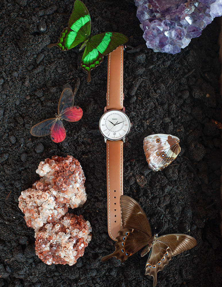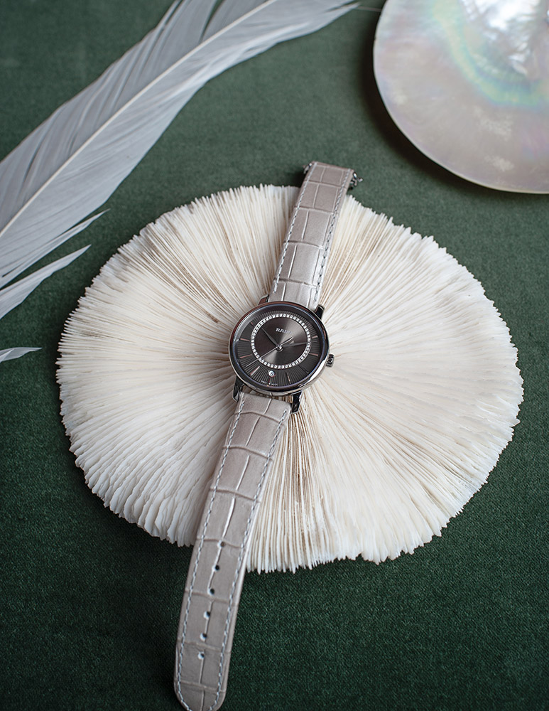 Теперь благодаря сочетанию двух самых прочных материалов, используемых за всю историю часового производства — бриллиантов полной огранки и высокотехнологичных материалов — компания Rado добилась еще более потрясающего эффекта. А за счет перламутра и кожаного ремешка эти часы смотрятся женственно и элегантно.