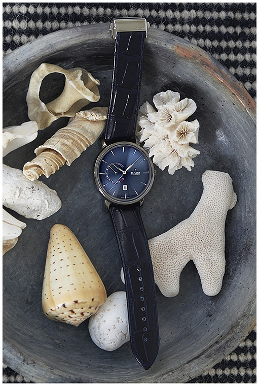 Модель имеет широко и легко читаемый циферблат — характерную черту всей линейки Rado DiaMaster Power Reserve. Циферблат, украшенный узором «солнечные лучи» и оснащенный индикатором запаса хода на 9-часовом делении, сияет как в синем, так и в черном цветовом оформлении.