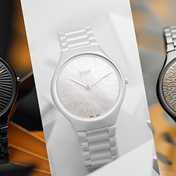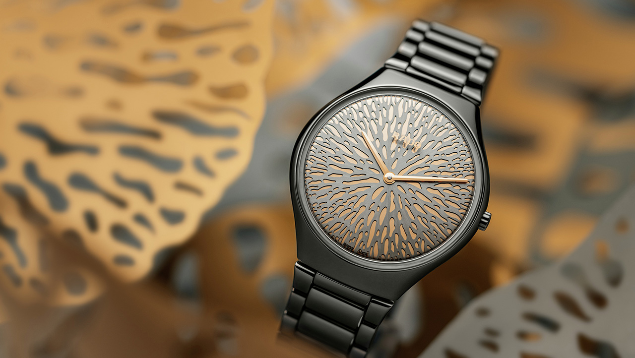 В последней серии часов этого сотрудничества изысканные природные мотивы трех совершенно разных растений воплощены в оригинальном дизайне циферблата. Каждый из них был подобран для индивидуальных часов, чтобы соответствовать настроению и оттенку их моноблочного высокотехнологичного керамического корпуса True Thinline черного, белого или плазменно-серого цвета. Выбранные растения — гавайский Лулу Лело, чилийская араукария и йеменское кровавое дерево Драаон, которые находятся в списке исчезающих видов. Эти растения привносят чувственность и визуальный ритм в индивидуальный дизайн.