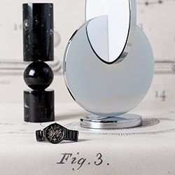 Циферблат с прорезями геометрических форм обнажает движущиеся детали механизма, пружину баланса и саму платину. Это позволяет наблюдать за технической работой часов. Запас хода составляет до 80 часов. У обладателя модели из линейки True достаточно времени, чтобы полюбоваться этим завораживающим процессом.