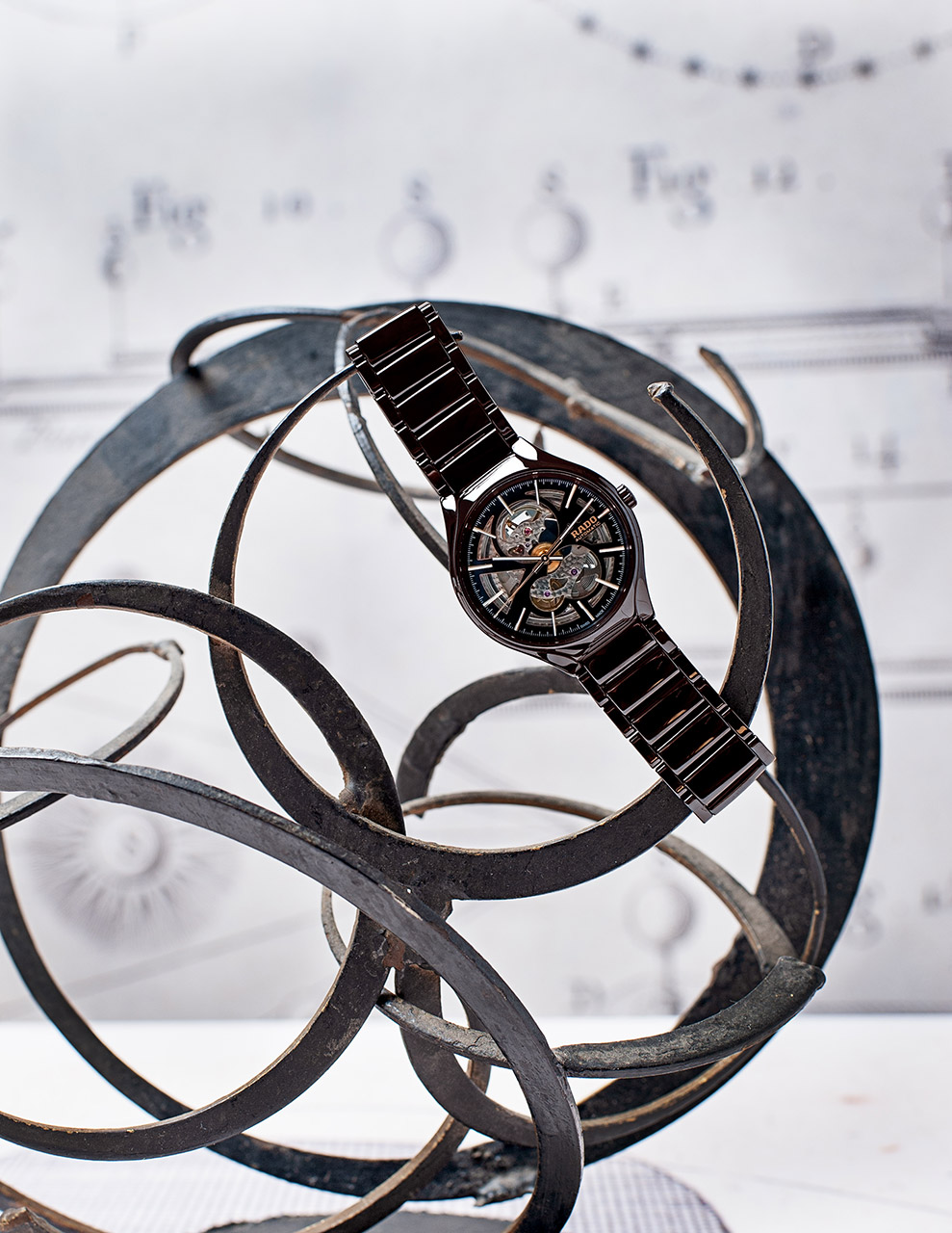 Новая модель True Open Heart Automatic выполнена из знаковых материалов компании Rado — сверхлегкой, устойчивой к появлению царапин высокотехнологичной керамики и сапфирового стекла. Оба материала используются для создания акцента на ключевых деталях механизма.