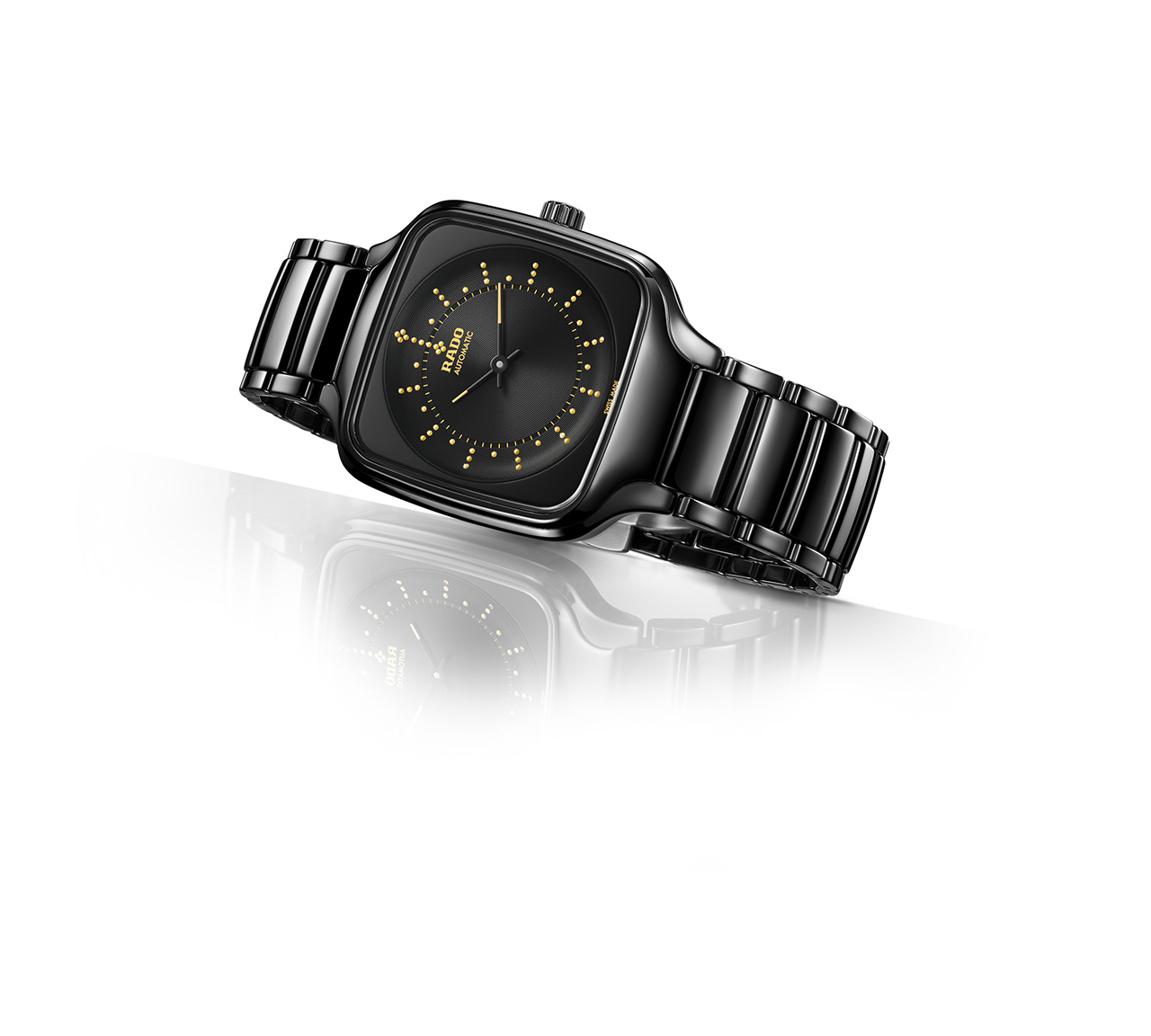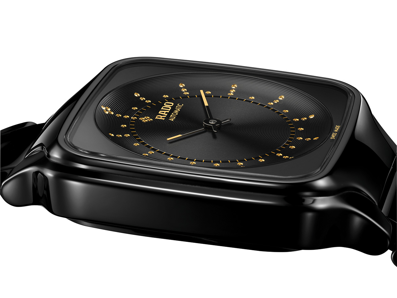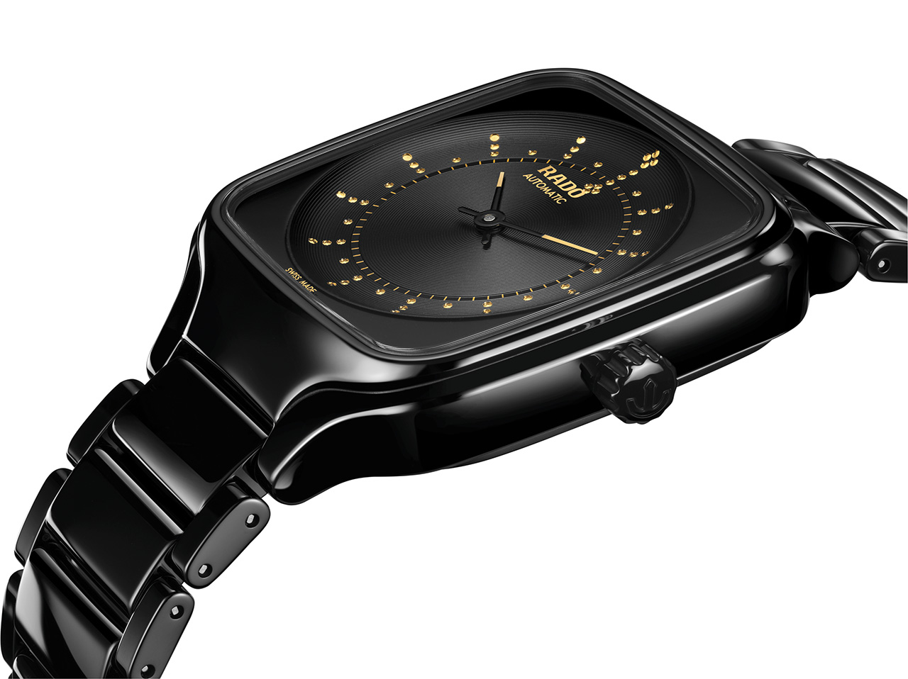 • С внутренней стороны нанесены металлизированные логотипы цвета желтого золота Rado, Automatic и Swiss Made.