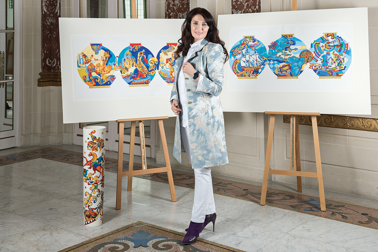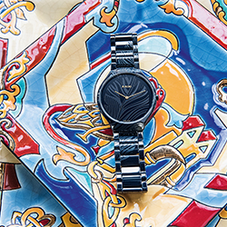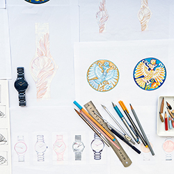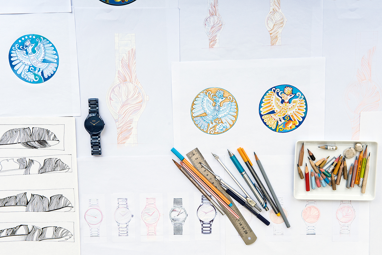 Символизм, следование традициям и цвет — отличительные черты работ Евгении Миро. В своих знаковых работах она использует символы и мотивы, чья история уходит корнями в древние века, и сочетает их с самыми разнообразными материалами для создания долговечных произведений искусства. Обладая огромным опытом в работе по росписи шелка и тончайшего фарфора, Евгения применила свое мастерство в новом проекте с необычным для себя материалом, где огромную роль играют микроразмеры. Художник создала дизайн часов в сотрудничестве с ведущим швейцарским часовым брендом Rado.