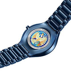 • Задняя крышка корпуса из титана с печатным изображением птицы на сапфировом стекле.