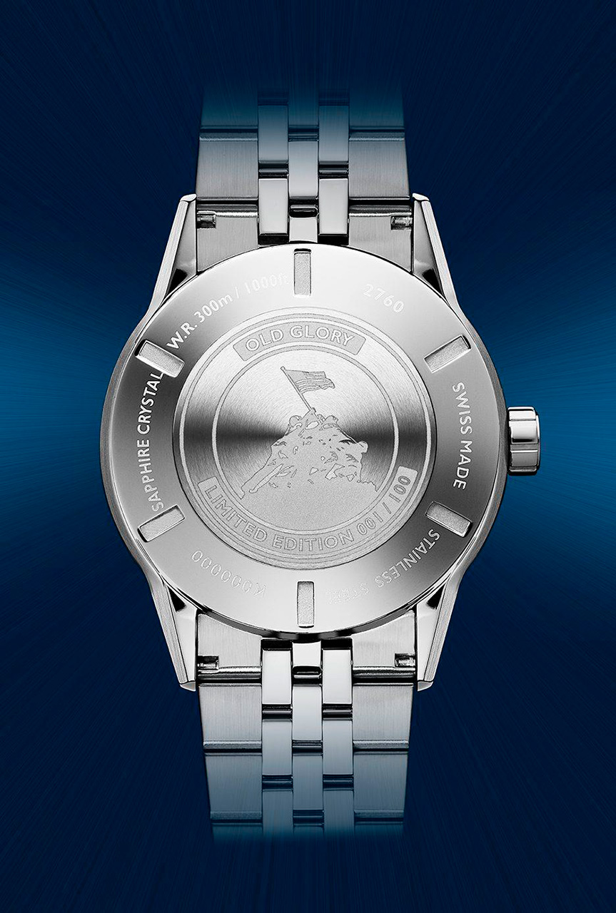 Эти эксклюзивные часы для США оснащены швейцарским механизмом RW4200 с автоподзаводом и функцией даты, расположенной в положении «3 часа». На задней крышке корпуса выгравировано изображение знакового момента в истории США – подъема американского флага на Иводзиме.