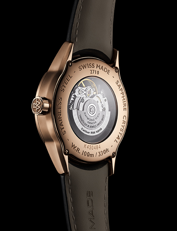 Водонепроницаемость корпуса составляет 5 атм. (50 м). В часах установлен автоматический механизм «RW 4200» на 26 камнях с открытым балансом, который обеспечивает функции часов, минут и секунд. На чёрном глянцевом циферблате находятся часовая, минутная и секундная центральные стрелки выпуклой формы с напылением из розового золота и люминесцентным покрытием, условные часовые индексы с PVD-покрытием розовым золотом, а также круглое отверстие, позволяющее увидеть движение балансира. Часы укомплектованы чёрным ремешком из телячьей кожи, снабжённые стальной складной застёжкой, покрытой PVD-напылением из розового золота и двойной системой блокировки.