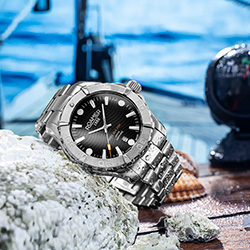 Привлечет внимание эта спортивная и элегантная модель не только дайверов и пловцов, но и любителей стильных и функциональных часов.