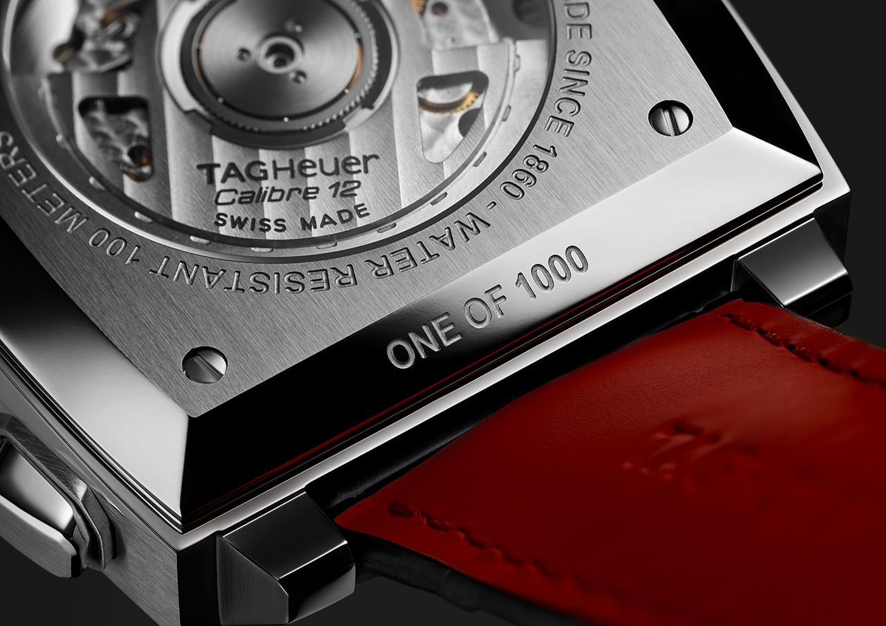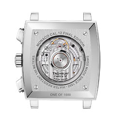 В отличие от изначального механизма Monaco Calibre 11 новый Calibre 12 обновил внешний вид знаменных часов. Теперь заводная головка расположена с правой стороны корпуса – вместо левой, как это было с Calibre 11. TAG Heuer представляет последнюю модель Calibre 12 Monaco с потрясающим серым циферблатом. Модель из нержавеющей стали оснащена классическим черным ремешком из кожи аллигатора с матовым рутениевым циферблатом. Рутений является частью платиновой группы и переливается разными оттенками в зависимости от источника света. Гладкие черные опаловые счетчики в позициях 3 и 9 часов создают изысканный контраст с матовым циферблатом. Центральная секундная стрелка, 12-часовой указатель и кончики часовой и минутной стрелок ярко-красного оттенка подчеркивают современный стиль этой легендарной модели. Всего выпущено 1000 экземпляров Monaco Calibre 12 Final Edition, а на корпусе из нержавеющей стали каждой модели выгравирован ее лимитированный номер. (6,7)