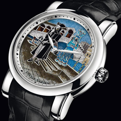 Новая коллекция минутных репетиров «Carnival of Venice» позволит своим будущим владельцам носить на руке частичку Венецианского карнавала, который будет периодически напоминать о себе двигающимися в такт музыке жакемарами.